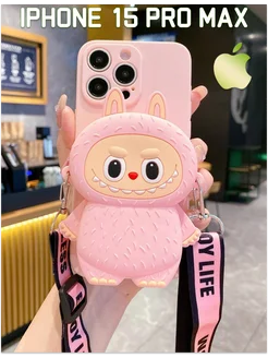 Чехол сумка кошелек на iPhone 15 Pro Max лабубу