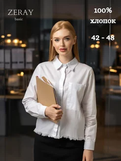 Белая рубашка женская укороченная-офисная хлопок oversize