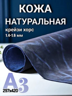 Кожа натуральная А3 "крейзи хорс", синий, 1.4-1.6