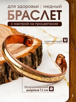 Браслет медный лечебный с магнитами с мантрой на процветание