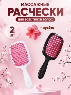 Расчёска для волос массажная продувная щетка 2 шт и крабик