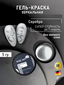 Гель краска для ногтей френча серебро зеркальная