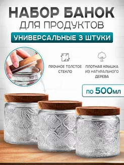 Банка для сыпучих продуктов стеклянная с крышкой 500 мл 3 шт
