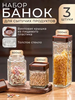 Набор банок для сыпучих продуктов стеклянных с крышкой 3 шт