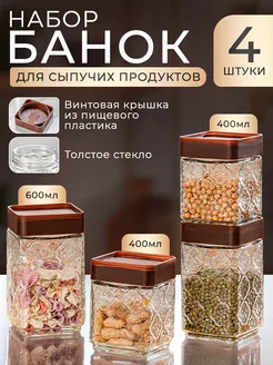 Набор банок для сыпучих продуктов стеклянных с крышкой 4 шт