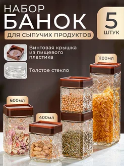 Набор банок для сыпучих продуктов стеклянных с крышкой 5 шт