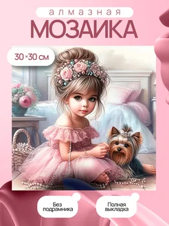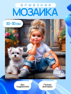 Алмазная мозаика без подрамника девочка с собачкой