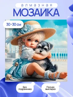 Алмазная мозаика без подрамника девочка в шляпе с собачкой