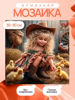 Алмазная мозаика без подрамника 30*30 девочка с гусятами
