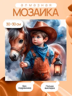 Алмазная мозаика без подрамника 30*30 мальчик с лошадью