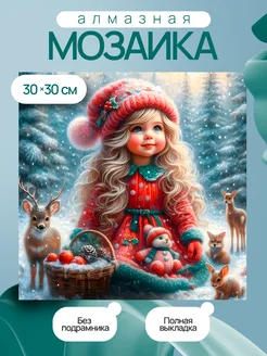 Алмазная мозаика без подрамника 30*30 девочка с оленятами
