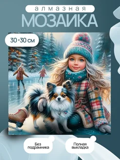 Алмазная мозаика без подрамника 30*30 девочка с лошадью