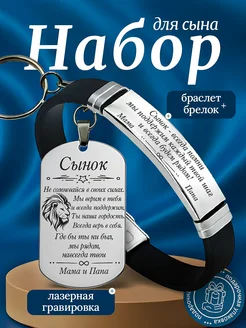 Подарок сыну браслет и брелок с гравировкой От Мамы