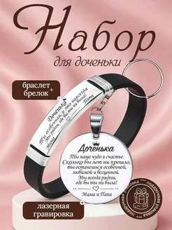 Брелок и браслет для дочери с гравировкой от мамы и папы