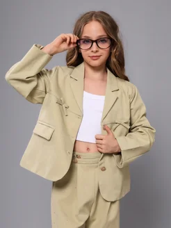 Костюм с пиджаком нарядный бантиком блестящий