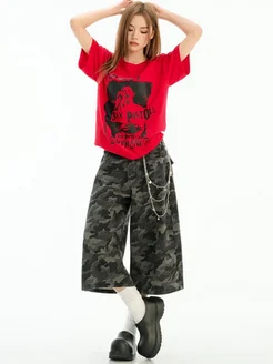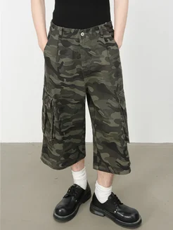 Шорты джинсовые багги длинные камуфляжные Y2K