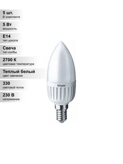 (5 шт.) Светодиодная лампа C37 5Вт 220В 2700K E14