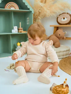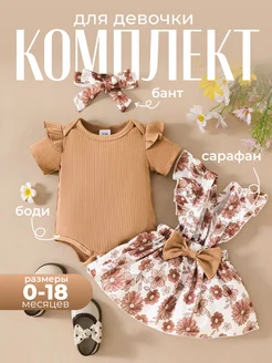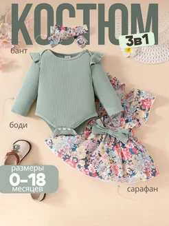 Комплект боди и платье сарафан для новорожденных с рукавом