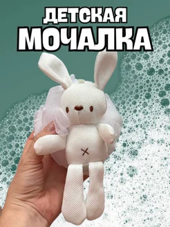 Мочалка детская для душа и ванны Кролик Белая