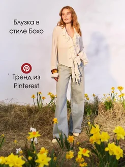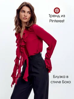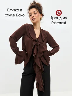 Нарядная блузка на завязках с рюшами и воланами