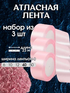 Лента атласная, упаковочная 40мм 23м набор из 3 шт
