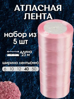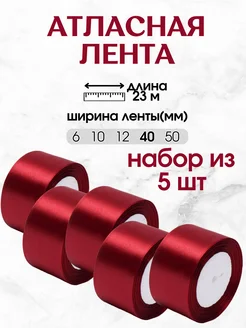 Лента атласная, упаковочная 40мм 23м набор из 5 шт