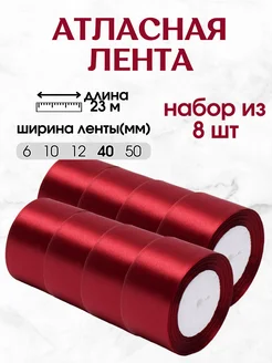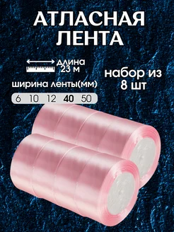 Лента атласная, упаковочная 40мм 23м набор из 8 шт