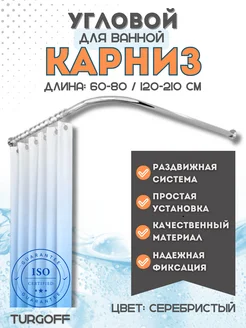 Штанга карниз для ванной раздвижной угловой 60-80*120-210 см