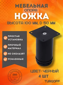 Ножка опора мебельная 100 мм, D 50 мм, 4 шт