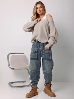 Джинсы багги широкие на резинке