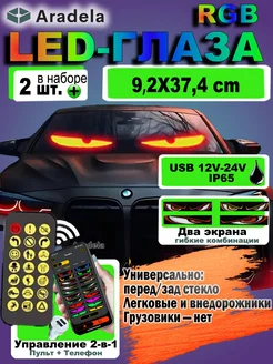 глаза на лобовое стекло светодиодные 92*374mm*2шт с пультом