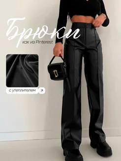 Брюки палаццо кожаные со стрелкой без утеплителя