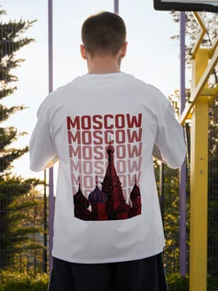 Белая футболка оверсайз с принтом Москва