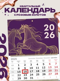 Календарь 2026 квартальный с золотом, настенный