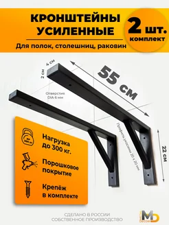 Кронштейны 55 см (2 шт.) черные, для столешниц полок раковин