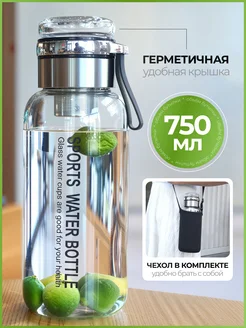 Бутылка для воды спортивная прозрачная стекло 750 мл в школу