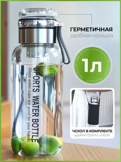 Бутылка для воды спортивная прозрачная стекло 1 л в школу