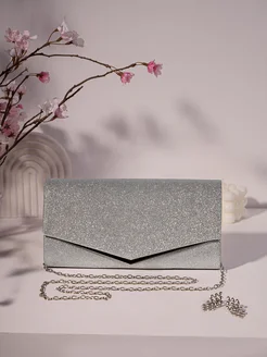 Клатч вечерний серебристый с цепочкой на плечо блестящий