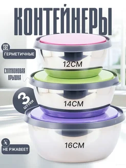 Набор контейнеров, нержавеющая сталь, герметичные 3 шт