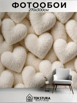 Фотообои 3D в спальню винил - Плюшевые белые сердца 300х270