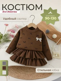 Костюм утепленный, вязаный нарядный детский с юбкой в садик