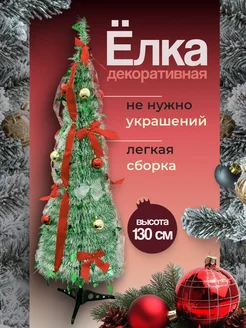 Ёлка искусственная из мишуры, каркасная, подставка, игрушки