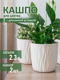 Горшок для цветов с дренажной вставкой кашпо пластик набор