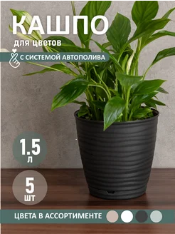 Горшок для цветов с автополивом, кашпо 1,5 л набор 5 шт