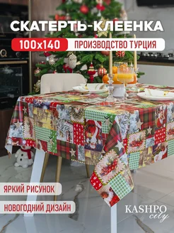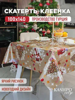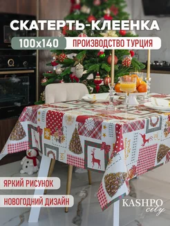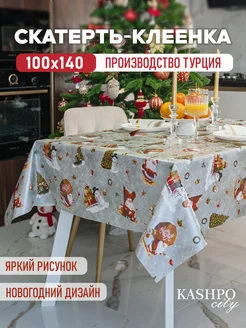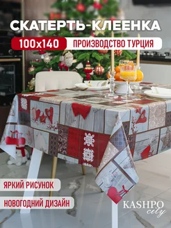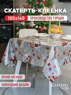 Новогодняя скатерть клеенка на стол праздничная пвх 100х140