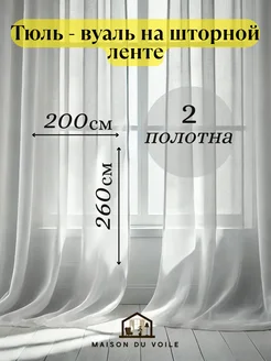 Тюль-вуаль на шторной ленте 200×260 см, для всех комнат