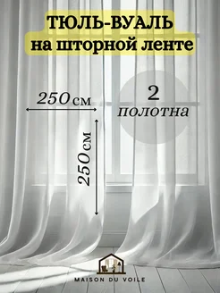 Тюль вуаль белый, 2 полотна по 250×250 см, на ленте