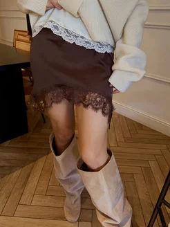 Юбка мини атласная с кружевом бельевая