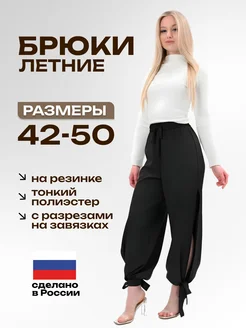 Брюки алладины на резинке летние с разрезами вдоль ноги