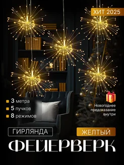 Гирлянда Фейерверк от сети, новогоднее украшение для дома